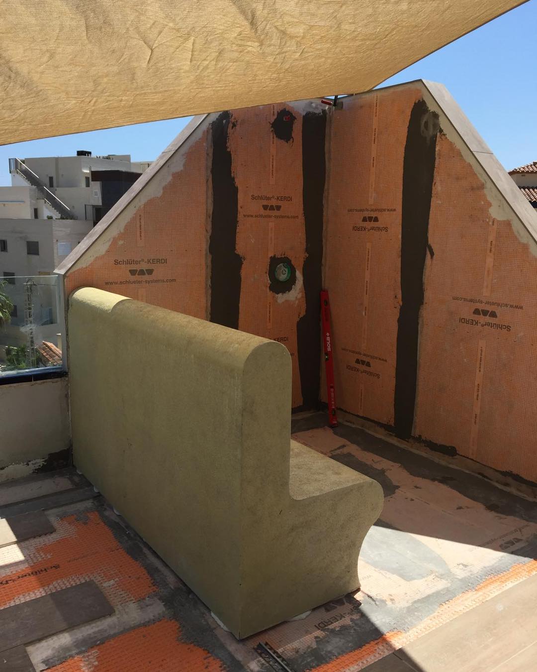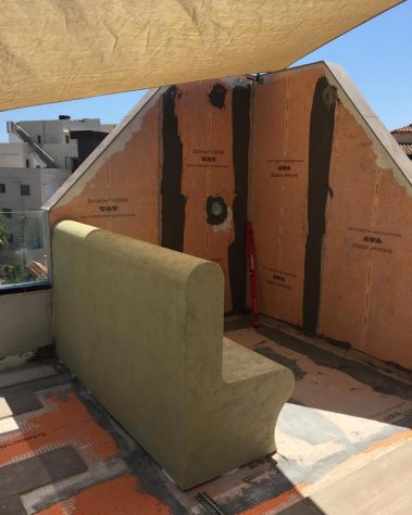 Die organischen Linien des Designs passen sich perfekt den Rundungen der individuell gebauten Sitz- und Wandformen an. Dadurch entsteht ein harmonisches Gesamtbild, das sowohl modern als auch zeitlos wirkt.
